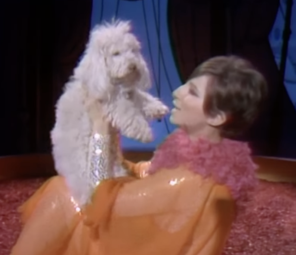 In her 2023 memoir, My Name Is Barbra, Streisand recalled buying the silver bodysuit at Filene’s Basement for eighty-one dollars, joking, “No wonder it was discounted…I remember thinking, Who’s going to buy this thing? But it was perfect for the show. We paired twitch a pink ruffle around the neck and an orange chiffon top and pants. (This was before I decided I hated the color orange).” (p.214)